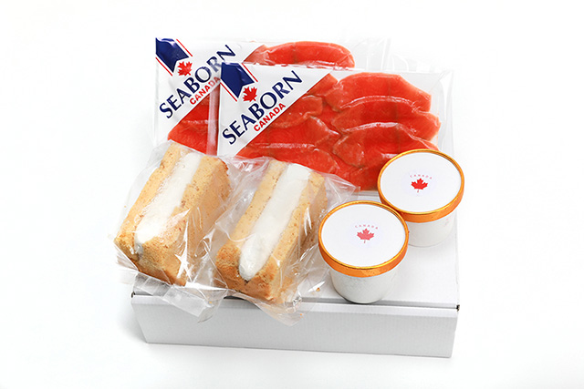 人気の紅スモークサーモン、芳醇なカナダ産メープルシロップを贅沢に使用したふわふわシフォンケーキと濃厚なメープルアイスクリームが手軽に楽しめる詰め合わせギフトBOXです。