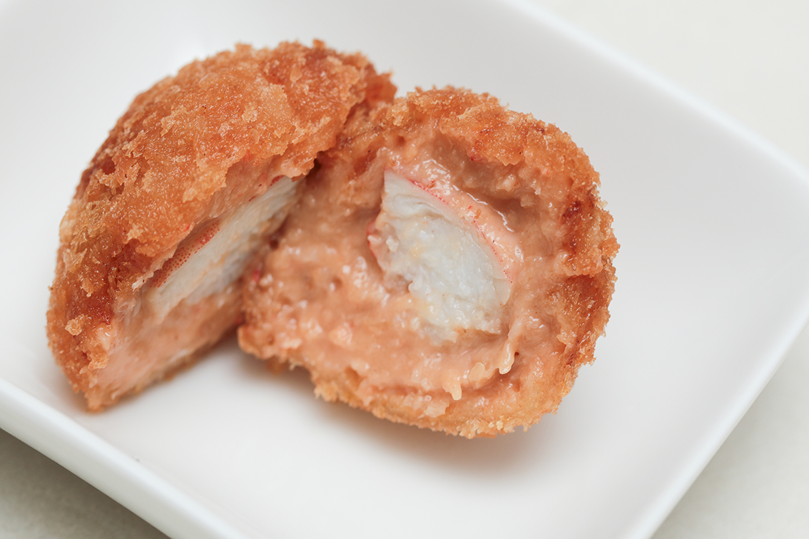カナダ産オマール海老を贅沢に一欠けら入れた特製コロッケ。とろけるクリームとオマール海老の濃厚な旨味が絶妙に絡み合います。冷凍のまま揚げるだけで、外はサクッと中はとろ〜り。