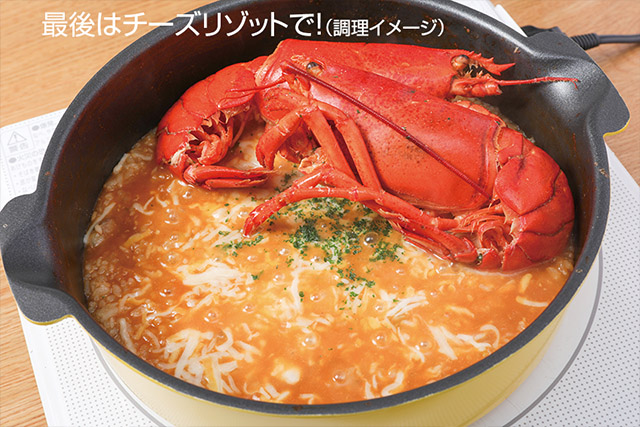 おうちで簡単に豪華なオマール料理を味わえます。調理は解凍せずに火にかけるだけ。オマール海老が丸ごと入っており、シーフードも盛りだくさんで大満足です。最後の〆にごはんとチーズを入れてリゾットに。